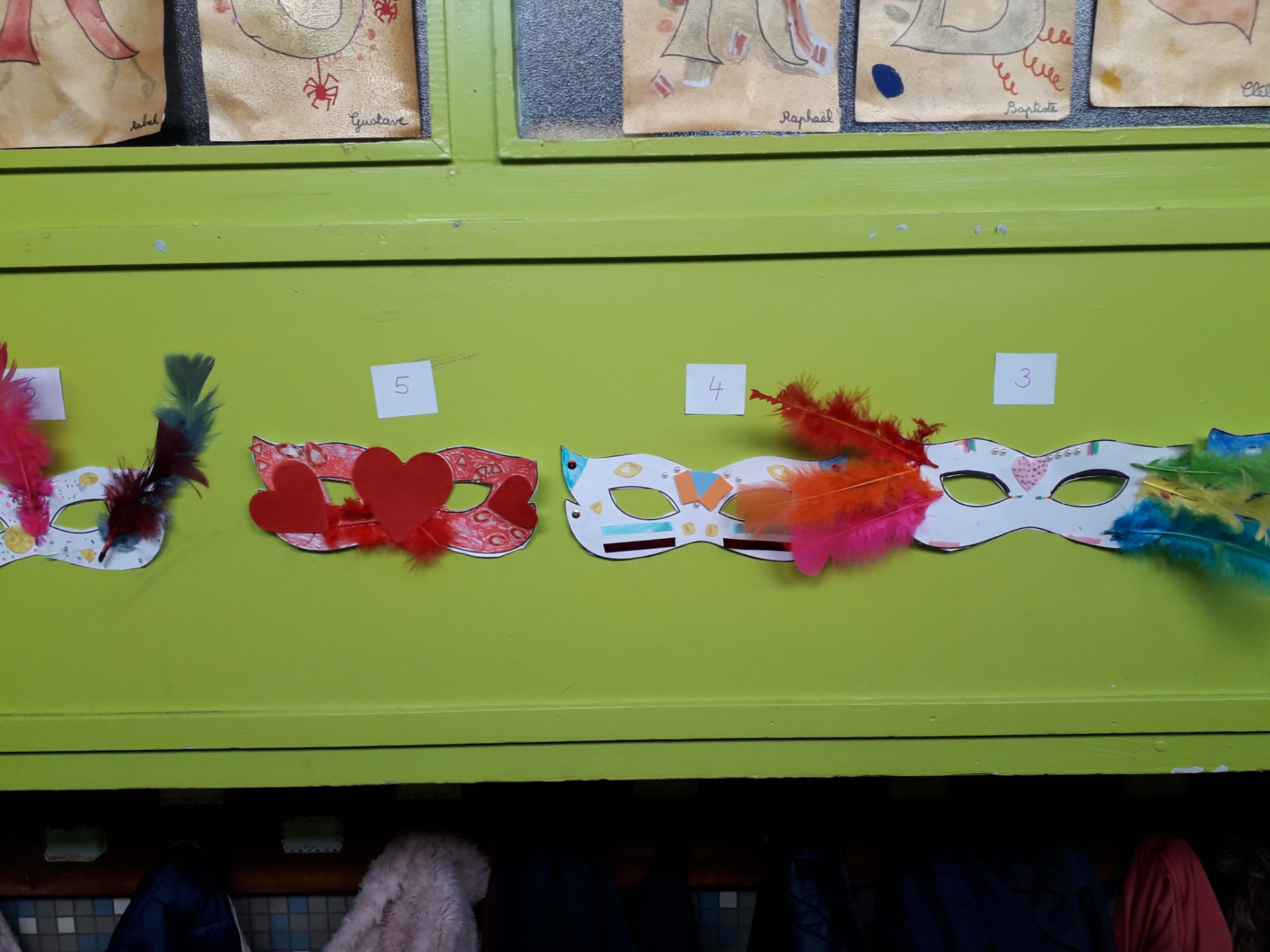 - Décoration de masques et vote par les 2 autres classes de CE2. La gagnante est Noémie avec le masque numéro 7.