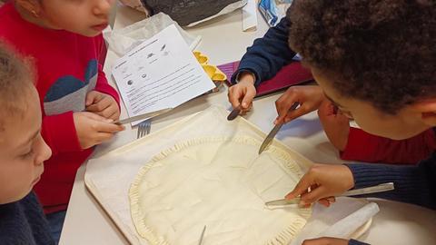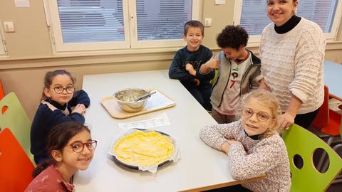 Suite à la lecture de l'album de Littérature de jeunesse "Une histoire de galette et de rois" élèves de CE1/C ont participé à un atelier culinaire. Ils ont cuisiné des galettes : galette à la frangipane et galette poire chocolat.