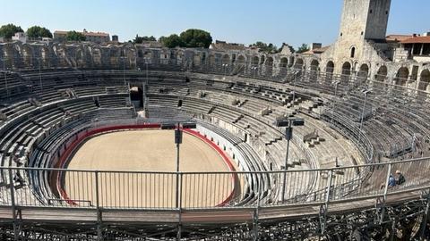 Jour 4 : Musée de la Romanité. Visite de Nîmes (temple, maison carrée, arènes, ruelles en préparation de la Feria).